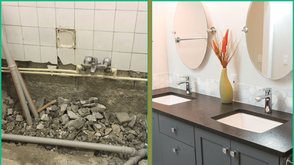 Le projet consistait à rénover complètement un ancien espace de lavabo en un espace moderne et fonctionnel. Les travaux ont inclus le remplacement des anciens tuyaux et installations par des équipements modernes, ainsi que l’ajout de nouvelles finitions pour un look contemporain.